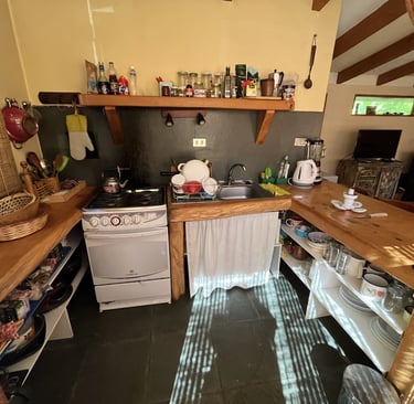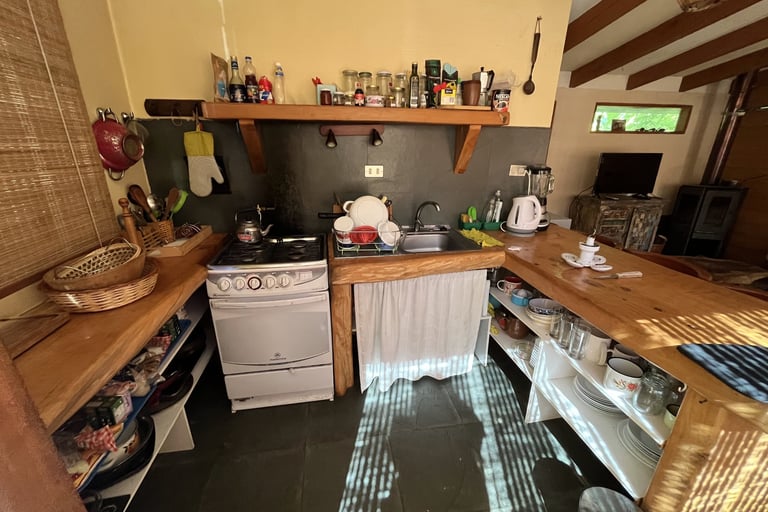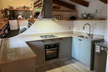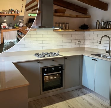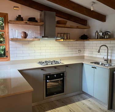 Diseño y ejecución de cocina funcional, reutilizando materiales de la cocina original.