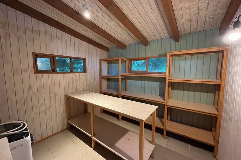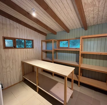 Diseño y ejecución de bodega, eliminando hongos, mejorando ventilación y creando un espacio más funcional de guardado.