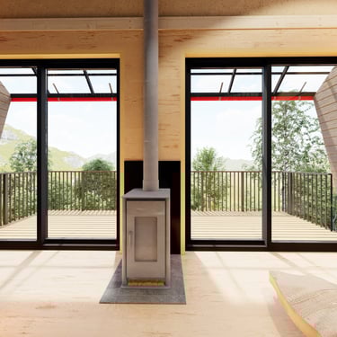 Diseño de vivienda en la montaña, optimizada para clima sur